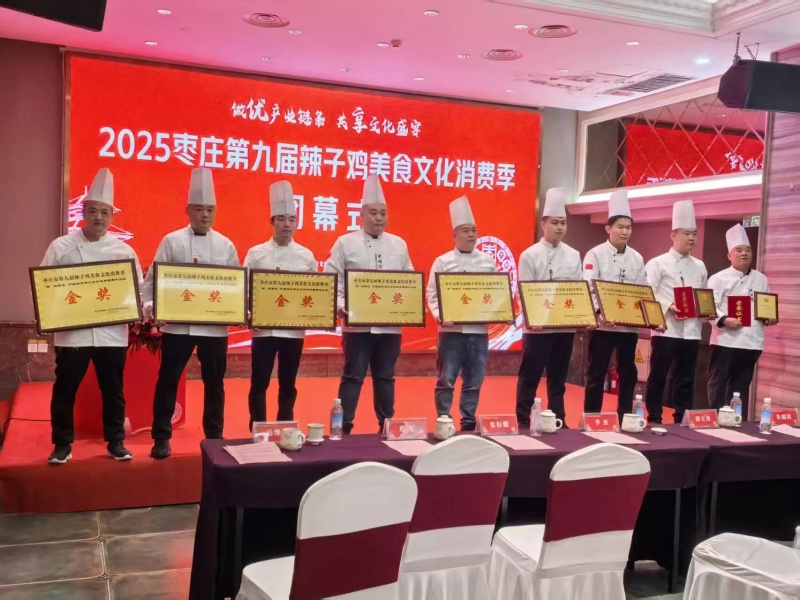 荣耀时刻!山东鲁南人才服务有限公司斩获第九届枣庄辣子鸡美食文化节金奖时间:2025-10-31 访问量:1011金秋时节,美食飘香。10月17日,备受瞩目的第九届枣庄辣子鸡美食文化节在市中区辣子鸡美食文化城盛大落幕。在这场汇聚了枣庄各地美食精英、传承辣子鸡文化精髓的盛会中,山东鲁南人才服务有限公司参赛队伍凭借精湛的烹饪技艺、对传统风味的创新诠释,从众多强劲对手中脱颖而出,一举斩获本次美食文化节比赛金奖,为公司赢得了沉甸甸的荣誉!