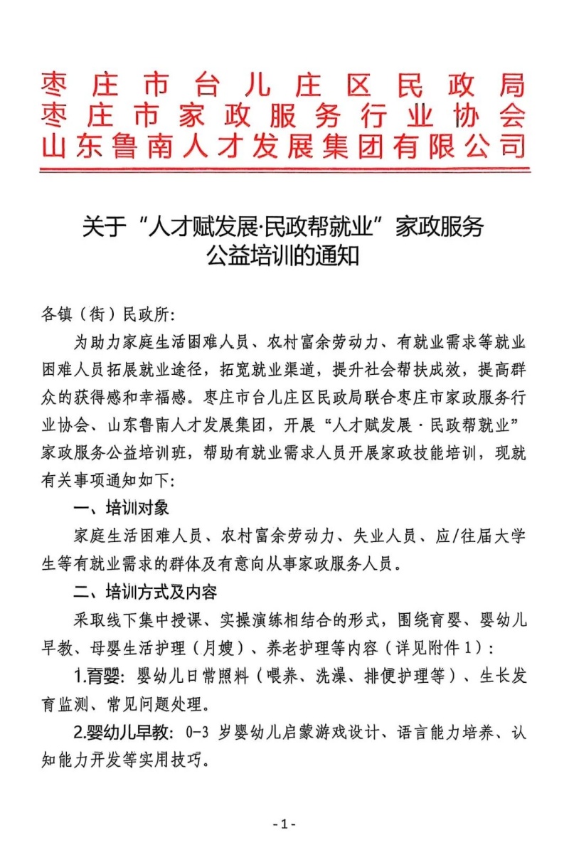 人才赋发展 · 民政帮就业 | 关于举办家政服务技能公益培训的通知