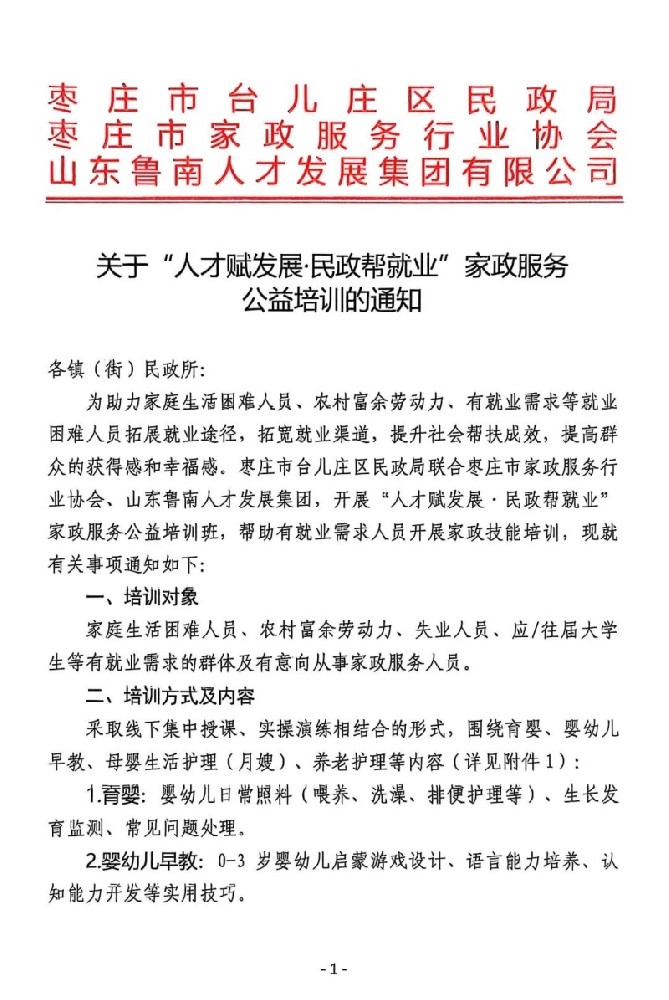 人才赋发展 · 民政帮就业 | 关于举办家政服务技能公益培训的通知